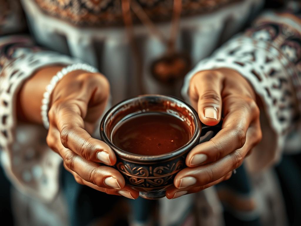 A Cerimônia do Cacau é um ritual milenar reverenciado pelas culturas maias e astecas. Não se trata de uma simples bebida; o Cacau Cerimonial é considerado uma Medicina Ancestral e uma “Planta Mestra”, conhecida por abrir gentilmente o chakra do coração.